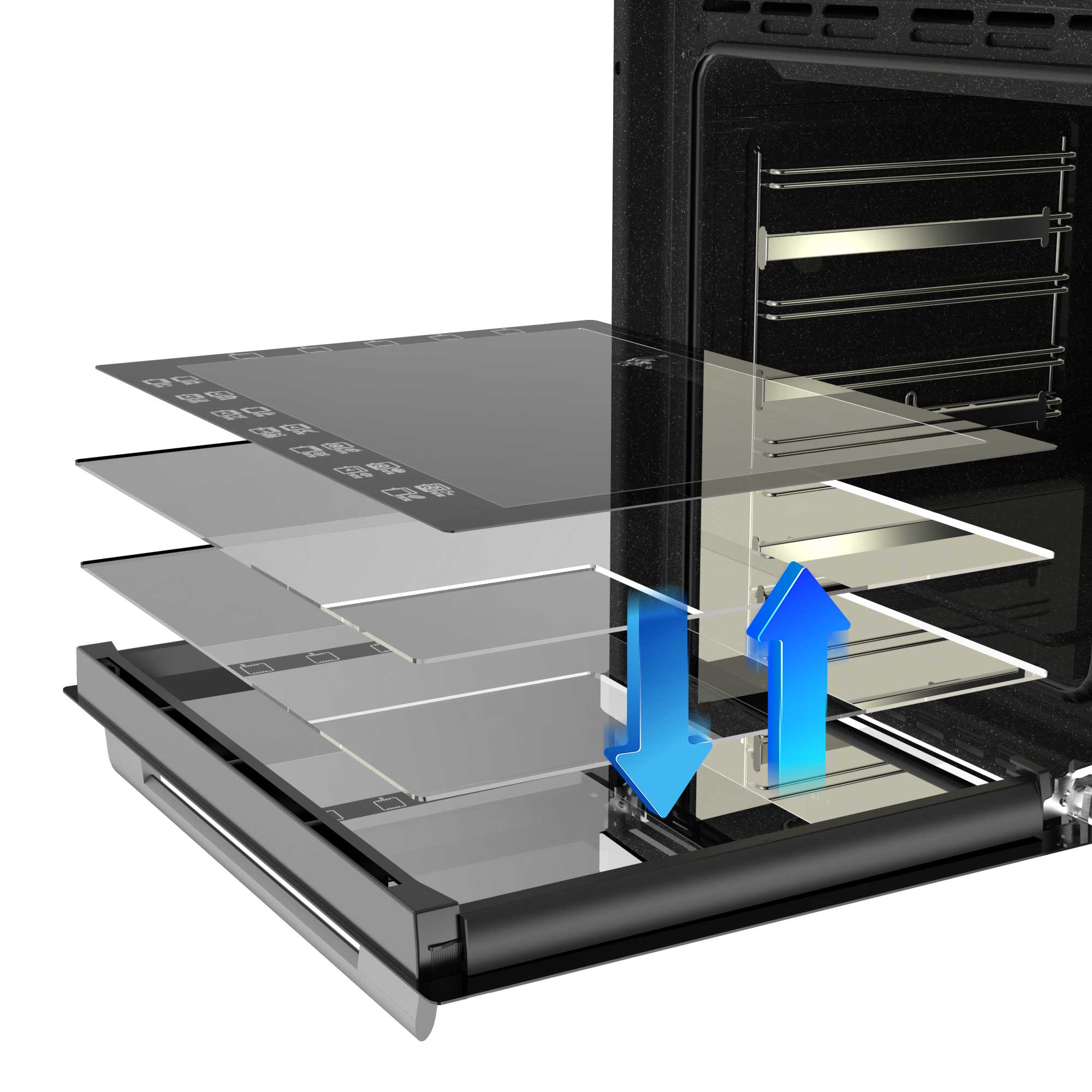 آشپزی زمانی لذتبخشتر میشود که بتوانید به راحتی ظروف و سینیهای بزرگ را داخل فر قرار دهید. V700B با ریل تلسکوپی ۴ طبقه این امکان را به شما میدهد تا به آسانی و بدون زحمت سنگینترین سینیها را جابهجا کنید. این طراحی هوشمندانه مانع از سوختگی و سختی کار با فر میشود و تجربهای ایمن و راحت در اختیار شما قرار میدهد. اگر به دنبال فر توکار ایرانی با امکانات حرفهای هستید، این ویژگی دقیقاً همان چیزی است که نیاز دارید.