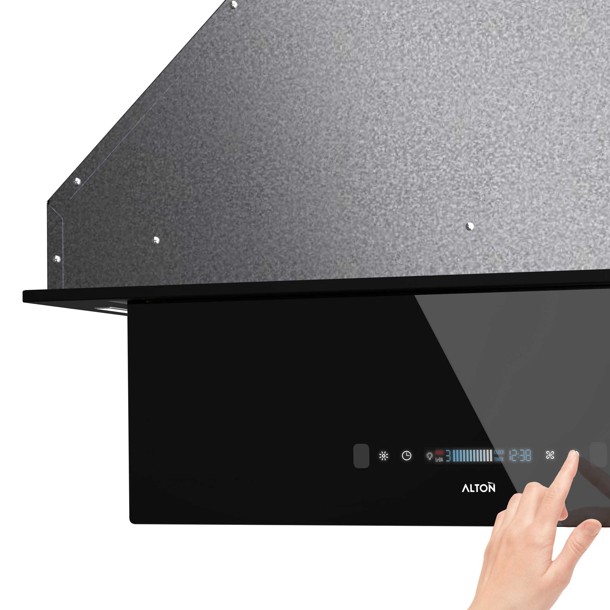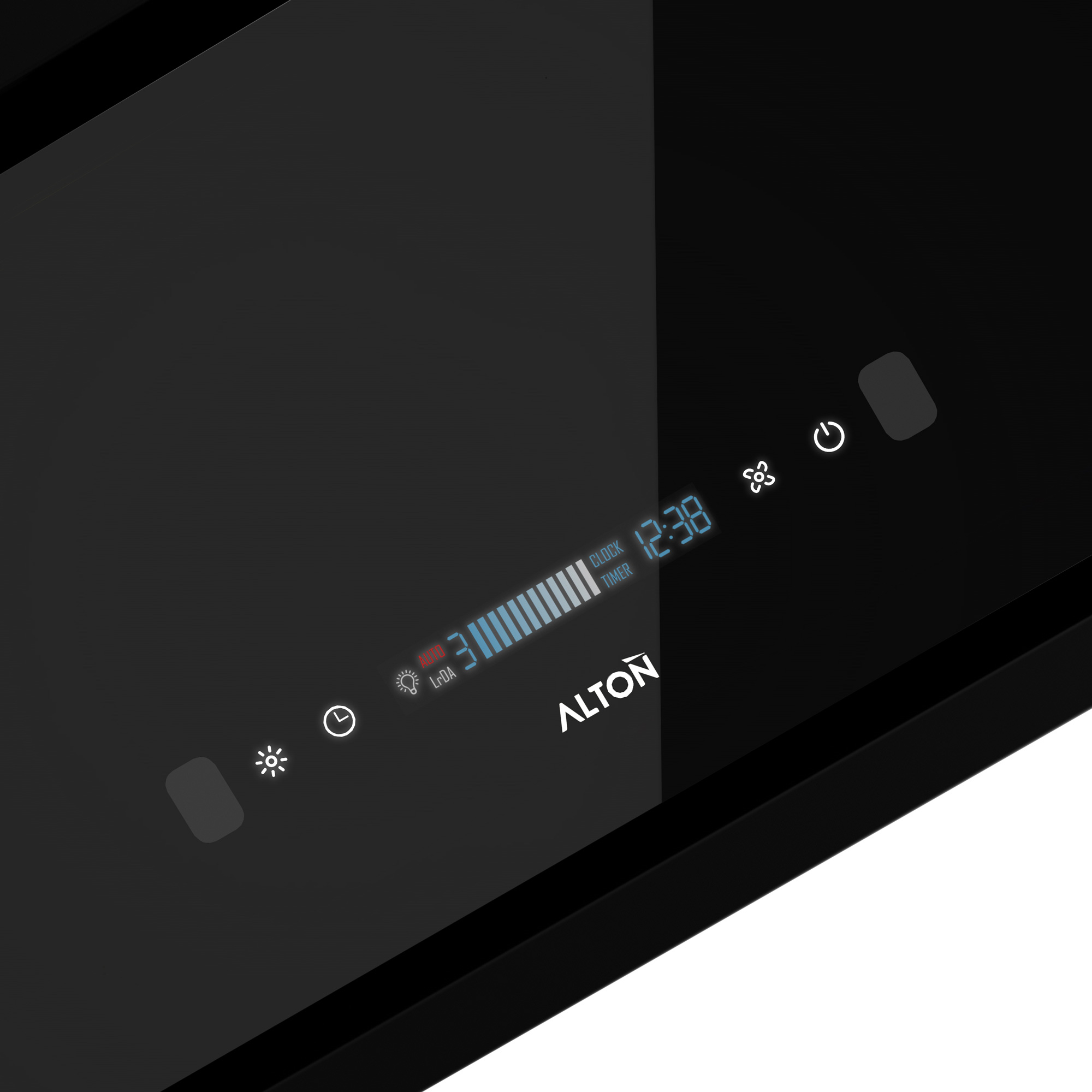 در این مدل، آلتون از نمایشگر دیجیتال لمسی با قابلیت نمایش ساعت و تایمر استفاده کرده است. این ویژگی باعث میشود کنترل عملکرد هود به سادهترین شکل ممکن انجام شود. با لمس آرام صفحه، میتوانید قدرت مکش را تنظیم کنید یا تایمر را برای زمان مشخصی تنظیم نمایید تا دستگاه بهصورت خودکار خاموش شود. این ترکیب از زیبایی و هوشمندی، تجربهای کاملاً متفاوت از تکنولوژی در آشپزخانه را برای شما رقم میزند.