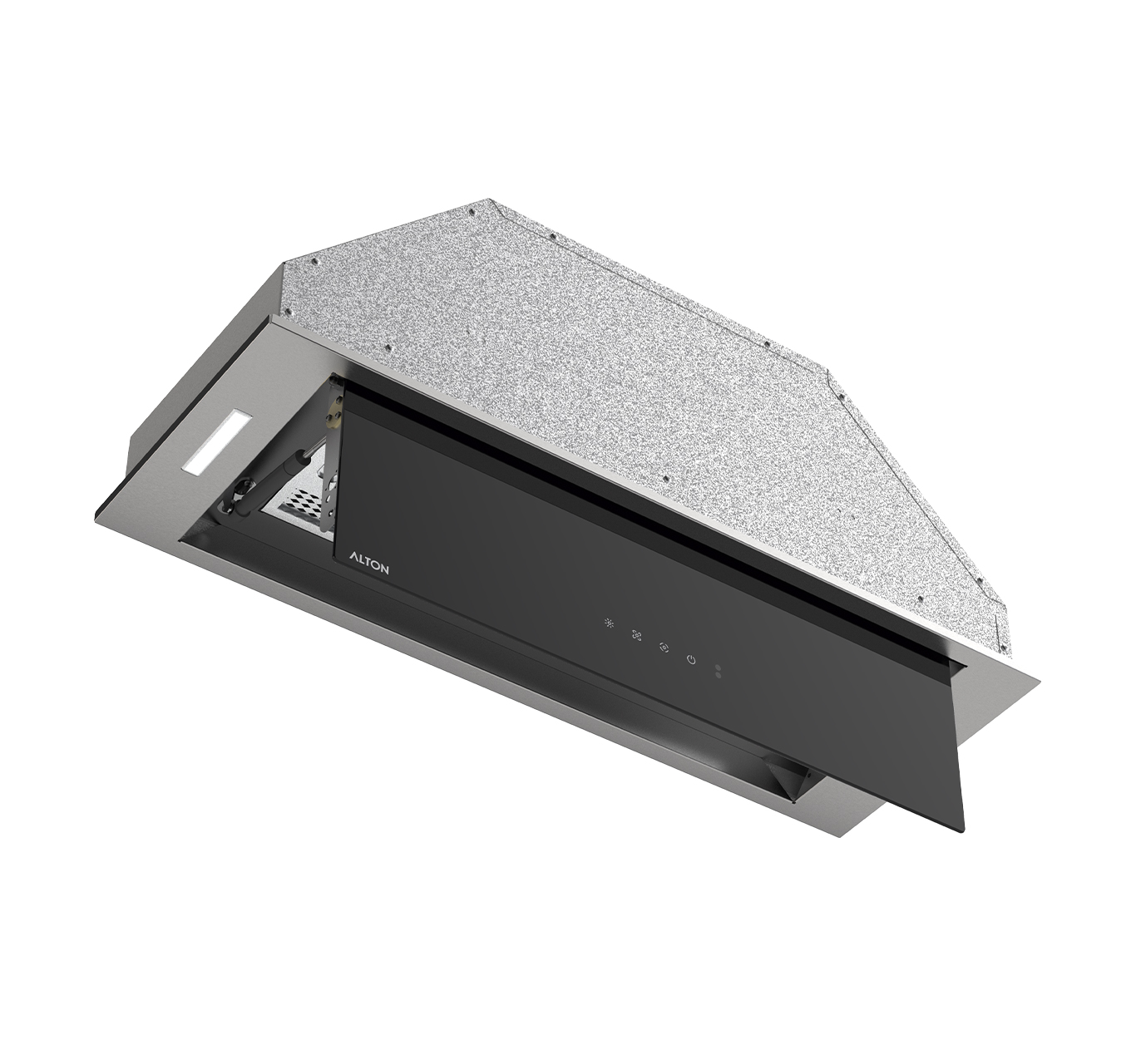 همانطور که اشاره کردیم، هود H807S یکی از هودهای مخفی به شمار میآید و طراحی خاص خودش را دارد. بدین معنا که بدنه اصلی هود در داخل کابینت قرار گرفته و فقط سطح بیرونی آن، در معرض دید قرار میگیرد. از این نوع هود، میتوان برای آشپزخانههایی که طراحی ساده دارند به خوبی استفاده کرد. برای مثال، اگر قصد دارید که از یک هودی استفاده کنید که داخل آشپزخانهتان دیده نشود، میتوانید روی هود مخفی H807S آلتون، حساب ویژهای باز کنید. چرا که این هود میتواند از لحاظ ظاهری برای تمامی آشپزخانهها مناسب باشد. هود H807S آلتون از یک شیشه سکوریت مشکی با فریم استیل ساخته شده است.