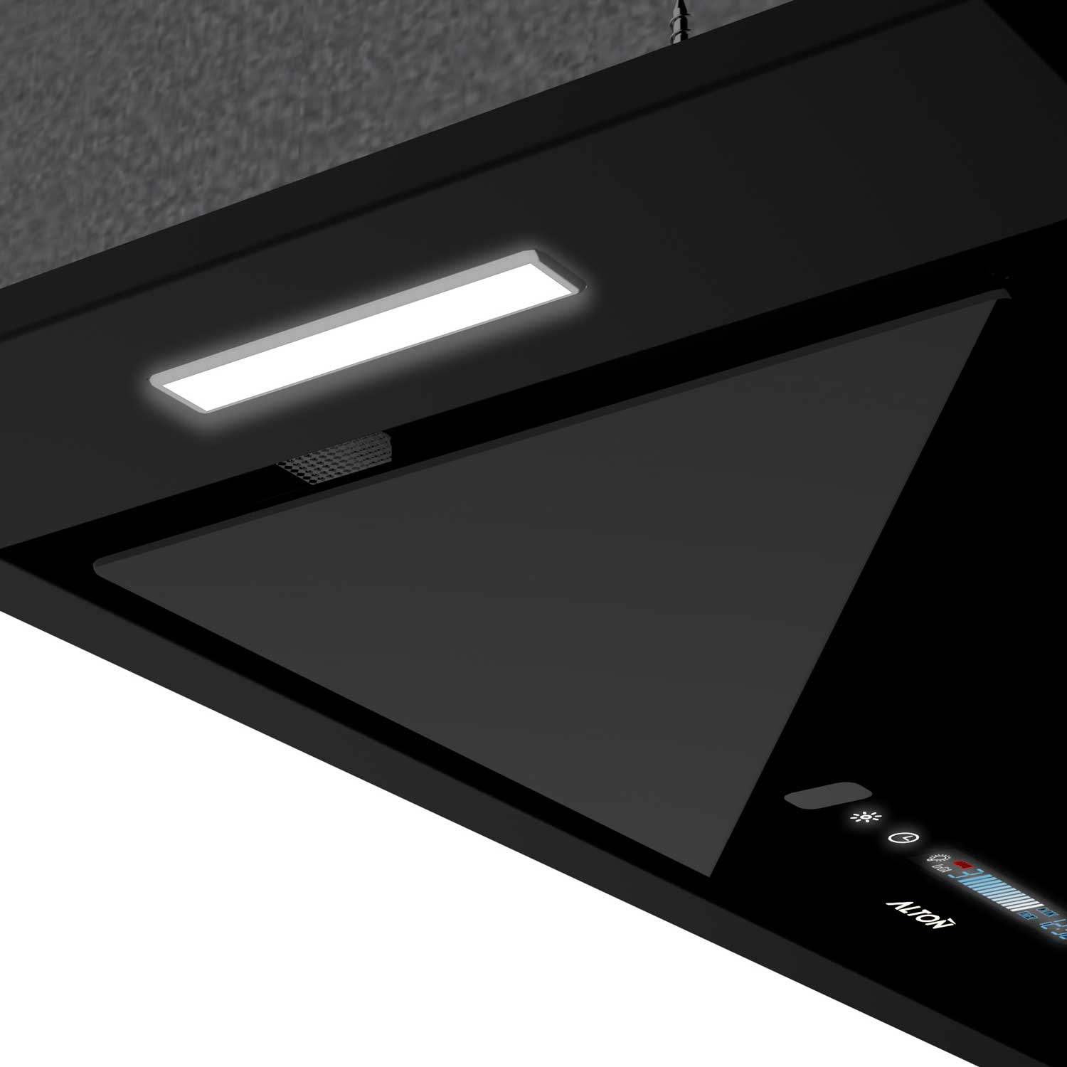 پنل لمسی مدرن این هود در کنار چهار کلید موشندار، امکان کنترل بدون تماس را فراهم کرده است. فقط با حرکت دادن دست مقابل پنل، میتوانید هود را روشن یا خاموش کنید؛ قابلیتی کاربردی، بهویژه وقتی دستها خیس یا آلودهاند.